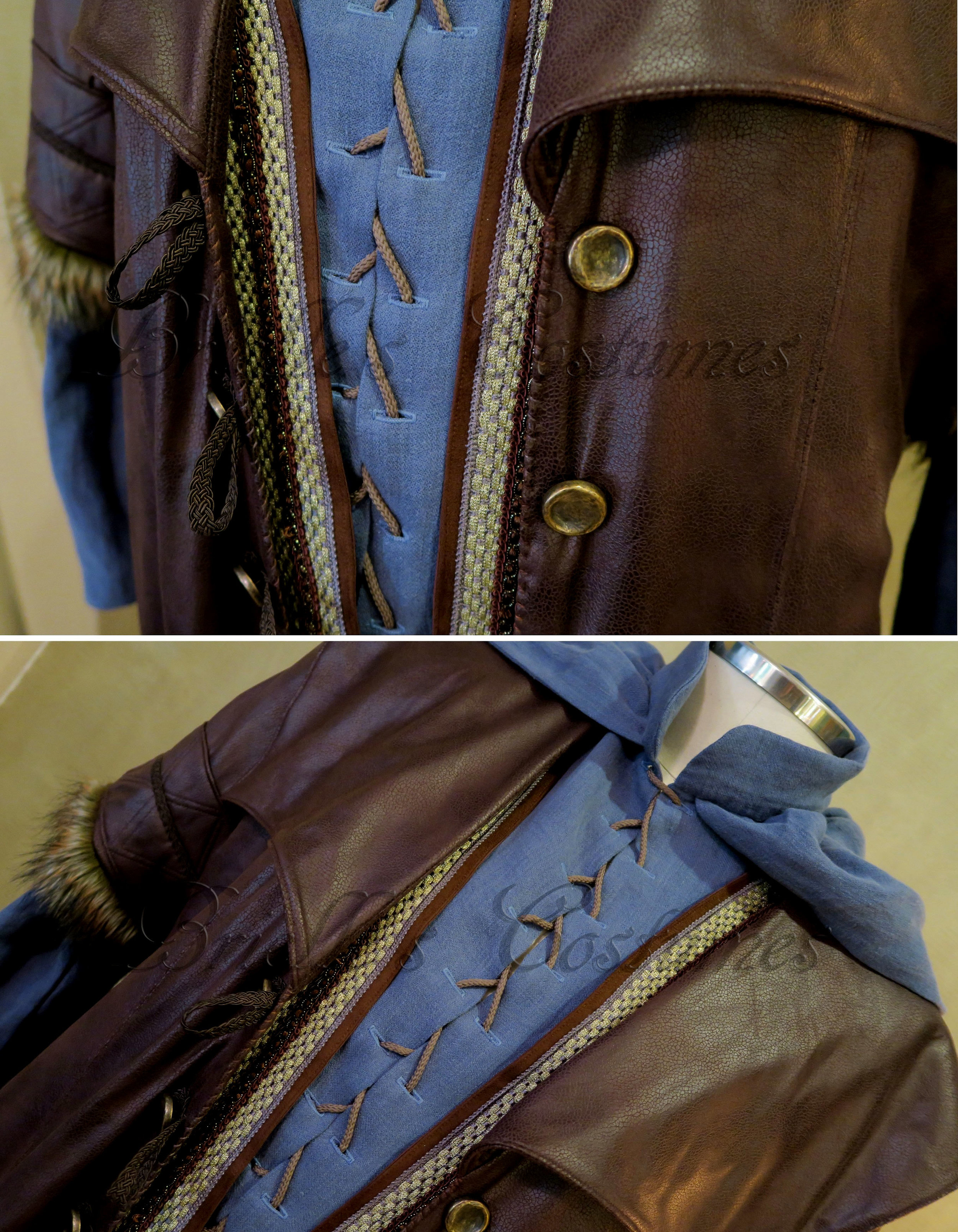 For this costume my customer was looking for something inspired by Kili from the Hobbit Films. Here is the look we came up with. Costume included a detailed vegan leather coat, blue shirt and long vest. Faux fur was also added to the costume. This gave it a nice dwarf style vibe.
